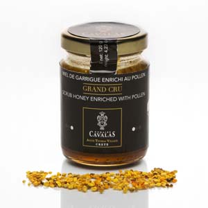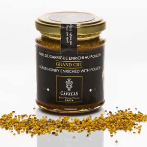 Ce miel puissant et atypique est issu du mariage improbable entre un miel de terroir rustique et des grains de pollen directement prélevés dans les alvéoles de la ruche. Un régal pour les puristes!